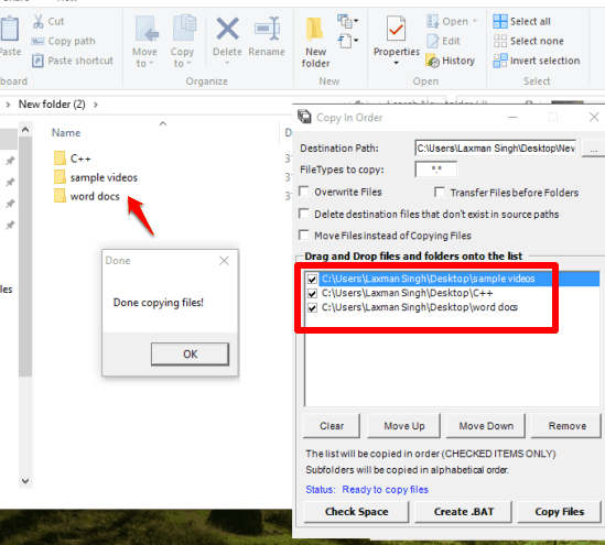 This freeware lets you select the destination folder and copy files and folders that you want to copy to the destination path. No matter what the sequence is of input files and folders, they will be copied in alphabetical order in the destination path.