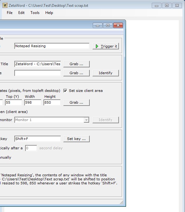 Window that we have setup really was resized and relocated to the location that we’ve have setup. For more easier setup, you can use the Grab button, so that ShiftWindow uses current location and size values of the select window. It saves you the trouble of having to type them manually. Every time that the window moves you can easily return it using the hotkey which you’ve configured for that rule.