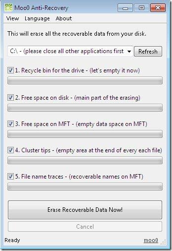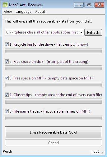 MooO Anti-Recovery is a free software that allows you remove all your recoverable data from the empty space of your PC’s hard-drive. It does not harm your existing files. It formats the Recycle Bin data permanently so that nobody can recover it anyhow.