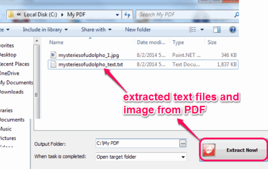 Its interface will not respond for sometime, but that is just a normal behavior. When all the files have been processed, you can access the download folder. There you will find output text files with original PDF file name and extracted images.