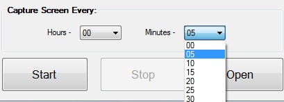 Choose from the available time intervals and hit the Start button. Now you are ready to automatically capture screenshots using ScreenCapture.