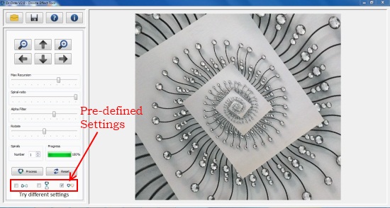 Apart from that, Dr.Oste Droste Effect Tool provides some pre-defined settings which you can directly apply to the image by making a checkmark against their entry.