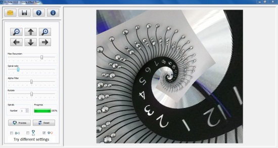 Dr.Oste Droste Effect Tool is a free software that lets you create attractive Droste Effects with images. Droste Effect is an image effect in which part of an image repeats itself recursively to form a spiral pattern. This kind of an arrangement is usually created with the help of the Pixel Bender plug-in in Photoshop. However, this is an expensive and complex approach for creating Droste Effect. If you are not a professional and just want to try your hands on editing images with Droste Effects using some simple and handy tool, then Dr.Oste Droste Effect Tool is surely the right app for you.