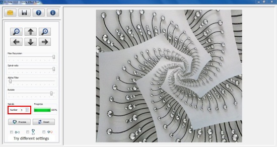 Each time you press the “Process” button, you will be able to see the preview of the Droste Effect on the selected image. Once you get the desired results, you can save the image in one of the supported image file format on your system.