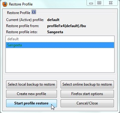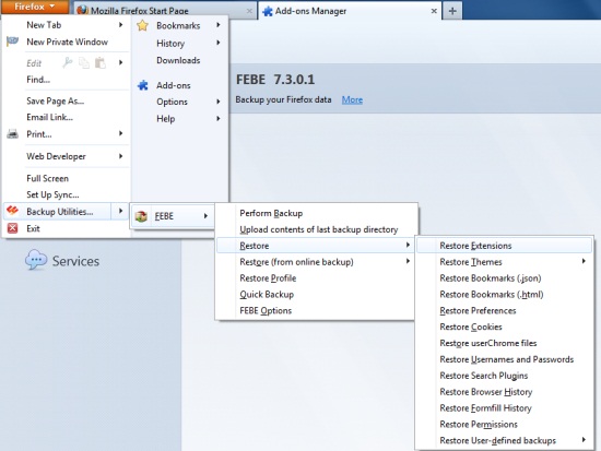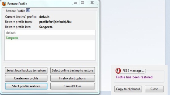 Restore your Firefox Profile using FEBE: