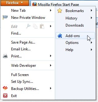 After installing FEBE in your Firefox browser, click on the orange-colored Firefox button and choose “Add-ons” option.