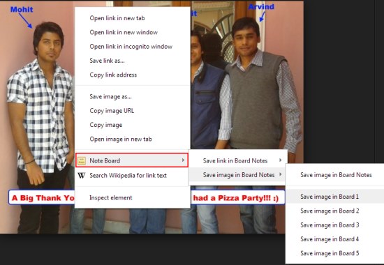 Note Board gets integrated with the context menu of selected text or image in your browser, so you can easily add web content to any of the boards simply by selecting the desired text, image, or link, and choosing “Note Board” option from the context menu.