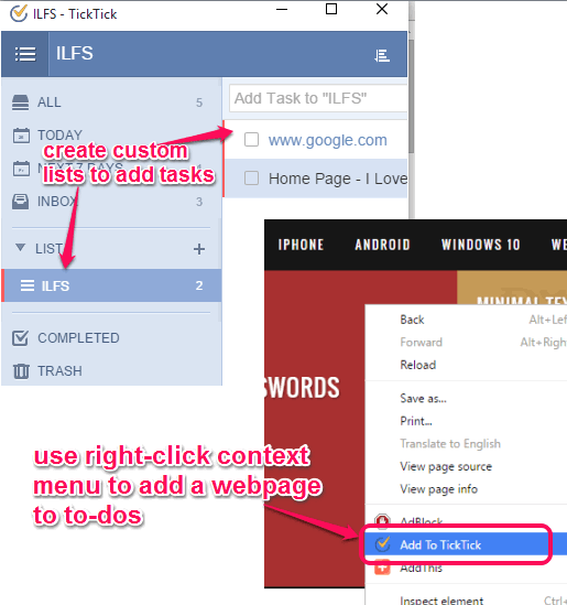 TickTick is surely a fantastic Chrome to-do list extension where creating to-do lists and adding tasks is so easy. Its feature to add webpages or webpage text to the to-do list is also a great addition. You should try it.
