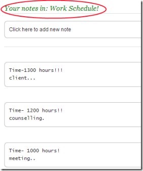Now you have your notebook available for you, start adding notes to it. You can create multiple notes in a notebook by clicking on available box (see the below screenshot). Write any note of your use. Once you have prepared your note,a click on Save button to save your note. Although, you can also save it by pressing Esc key.