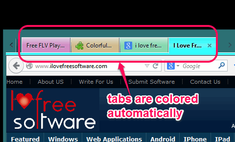 Install this Firefox add-on using the link placed at the end of this review. After installation, restart the browser. Now you will find that all the tabs are colored automatically. Each tab is colored with separate color susing the default color palette.