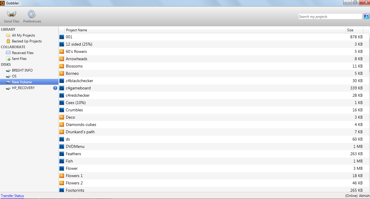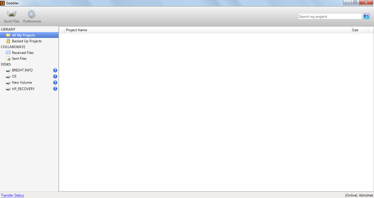 You can use Gobbler irrespective of the fact that the project or files you have are on a local drive or an external drive. The program would make sure that they are backed up even though you may move the drives from one to several computers. When launched the interface of the program looks quite simple and with a few options on it. The left side of the window has the drives available for backup along with the list of all the backed up projects by this software.
