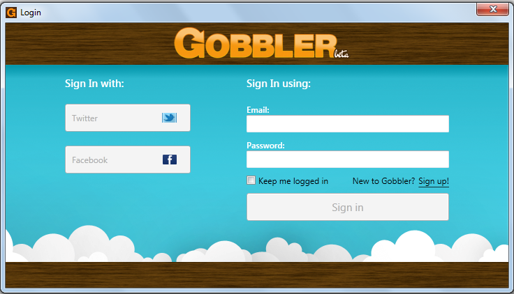 In order to install this free audio backup utility and start using it on your computer you need to visit the link here and click on the download button. After you do so the download process is started and the executable file gets downloaded on your system. Run the installer and install the program in your system by clicking on the required options. The moment you are done installing the free backup utility, you need to launch the program on your system where it would ask you to login through your Facebook or Twitter Id. You may even create your own Gobbler id through the options available. You can also try ADrive, Badongo and Cobian Backup for backing up your audio files and other important files.