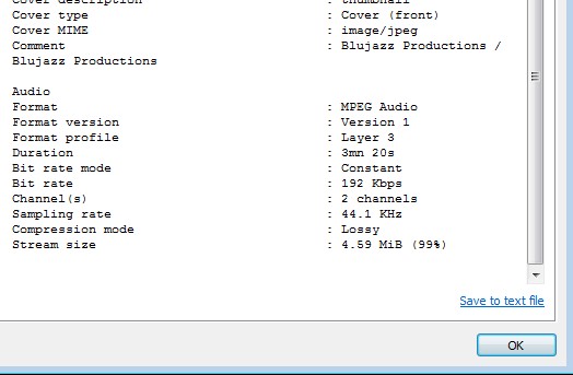 First image above shows us how analysis report looks like for video, this one is for audio. Obvious difference between the first image and the second one is that the first one has the Video section, while the second one doesn’t. Read through all the info that’s offered there and see just where you can play the selected audio or video file.
