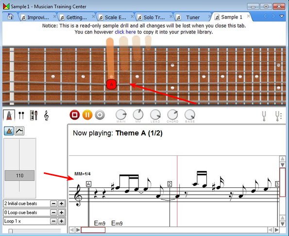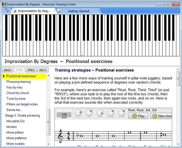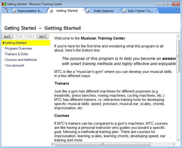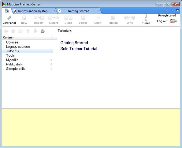There you can familiarize yourself will all the ins and outs of Musician Training Center. Those who are interested in getting down and dirty right away can for example start with a drill example, there’s 1 available in the free version.