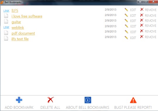 The most important use of Bell Bookmarks is that you can store web links as well as desktop files links with it. Hence, there is no need to open your web browser to view saved bookmarks. Once you will add them with this bookmark software, you can directly access them and can open them from its interface with default web browser.