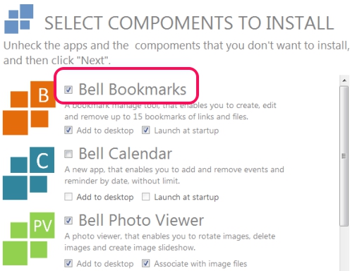 Bell Bookmarks comes with Bell Office which is a product of Bell Software. So you need to download Bell Office to install Bell Bookmarks. Its download link is present at the end. Start the installation process and you will find other components of Bell Office during installation such as Bell Reminder, Bell Photo Viewer, Bell Calendar etc. You can install or can skip their installation accordingly.