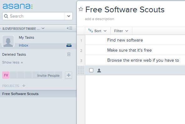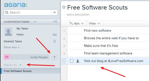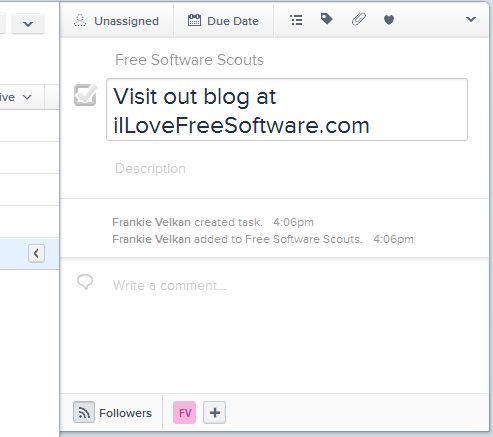 This free online team management service has a very easy to use interface. Everything that you need for managing projects and tasks is available in the left sidebar. From the left sidebar you can also invite people to join your team. Selected project from the left sidebar opens up on the right.