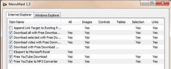 While there can be many context menus in Windows Explorer depending upon the file, folder, or directory you have clicked upon, there’s just one context menu in Internet Explorer. MenuMaid sums up all third party menu items of these context menus and creates a list of them.