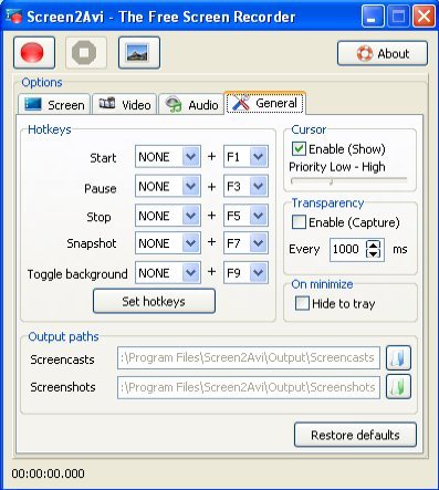 Another problem of some screen capture software is starting and ending recording. Every time the user has to cut out that part of the software where he actually starts the software to record the screen and move to the software which he wants to record. But with Screen2Avi he will be just ready to shoot with a hotkey whenever he wants to even if he is already in a full screen program. The other necessary information can be shown while recording like frame indicator or duration meter.