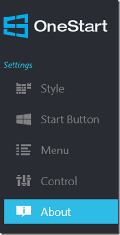 Click on Settings option to Change the settings of the app. You will get different options: Style, Start Button, Menu, Control, and About.