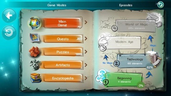 This Windows 8 puzzle game app tries to be as much interesting and fun as it can be. There are four different types of games within this game app. These includes: Main Game, Quests, Puzzles, and Artifacts. All of these themselves are puzzles, and in each of these, the main objective is the same; combine two elements and form a new element, except the Artifacts; in it, you have to combine three items to form a new one.