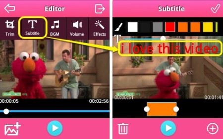 The free Android app has a unique function using which you can add text to your videos. It allows you to add totally customizable texts, as many as you want. You can select the text color, its size and duration for which you want to play the video. This feature is totally amazing.