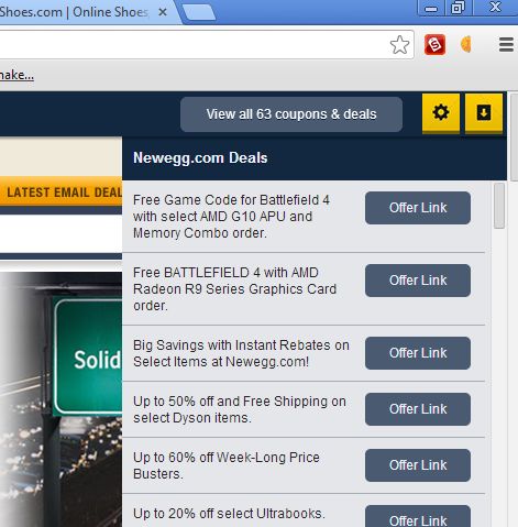 DealFinder is an extension that yet again works differently from both of the previous ones. This one shows as a toolbar, only on online shops where it has coupons to offer you.