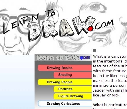 Another website to learn drawing lessons is Learn To Draw.com. The website has long and lengthy written tutorials that describe everything in detail. There are different tutorials in different tabs for different styles of drawing. The first tab contains a long tutorial on the basics of drawing. It teaches you about different techniques of drawing and how to apply them. The second tab is for Shading. Tutorial on how to learn shading is given in this tab. Similarly there are other tabs that teach you how to draw Portraits, Caricatures, figures etc. Along with all these tutorials, images are also available that you can save in Jpg format. Print them out and apply the learnt lessons on those pictures.