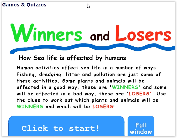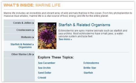 Apart from the written information on marine animals, this website has other interesting things as well. There are various quizzes and games that test your knowledge in the Activity zone. Material for teachers is also available that can be downloaded for free and used to teach students in the classrooms.