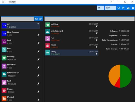 This article covers 5 free Windows 10 personal budget maker apps. Personal budget making is very important if you are thinking of saving money or even regulating your expenses. Setting a budget will help you control your expenses and your money in a better way. These apps will help you define a budget and add income and expenses to it. You can add your daily expenses in these apps and keep a track of your spending. Also you can check which category you are spending most money in and try to cut down on it. This way you can increase you savings as well.