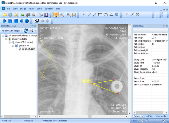 3DimViewer is simple, yet a powerful X-Ray viewer software. It lets you open an X-Ray image in its viewer and help you visualize it using some tools. This is cross-platform software and uses DCM format for the images to open and view X-Ray files. You can use the different set of tools to fully visualize the image like the zoom tool, brightness changer, coordinates changer, apply filters, and use ruler to measure the distances, angle, etc. You can do whatever you want with the X-Ray images and the software is very well able to handle that. However, here it doesn’t allow you to export an X-Ray as an image just like the software above.