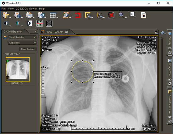Weasis is one of the best free X-Ray viewer software for Windows that you can use. It is an open source X-Ray viewer software too which lets you view X-Ray files right on your PC and you can use different tools to visualize it. It offers a very intuitive interface where you can open and view the X-Ray images. There are a lot of tools in this software that you can use to assist you while analyzing any X-Ray image. It offers you tools like zoom, pan, brightness controller, measurement tool, invert MUT, shapes, and some others. When you have analyzed an X-Ray image then you can opt to directly print it or you can even export it on the clipboard as an image.