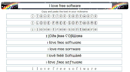 After visiting the website, you will see the list of cool fonts. It includes bubble, invisible ink, small caps, black bubble, and other fancy fonts. There is a search bar on the top where you can enter text. Once you add text in the search bar, you will see your text changing in several fonts below.