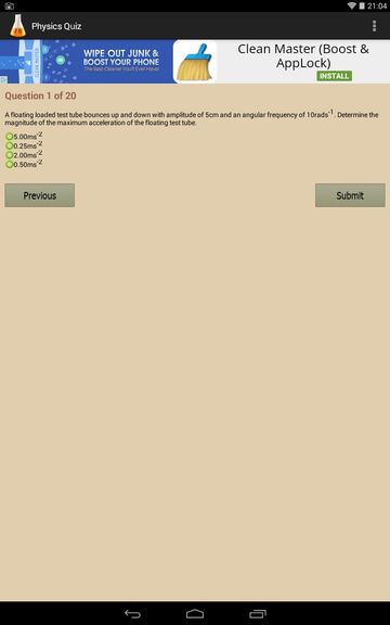Image above shows a quiz running. Each quiz offers 20 questions and at the end you’re given results. Practicals are what I like the most about Complete Physics, because it lets you practice solving physics equation assignments, which is a very important part of learning physics.