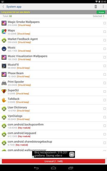 Root Uninstaller by dohkoos is similar to Root Uninstaller by RU, only it’s much more simpler. For example, you only get 1 list of apps, and all of them are mixed, the ones you installed and the ones that came pre-installed with the device.