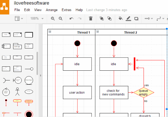 Draw.io is a free online diagram maker to draw activity diagrams. It is a completely free online service to draw software design diagrams like activity diagrams and other types of diagrams like network diagrams, flowcharts, etc. The best part is that it can be integrated with Google Drive, OneDrive, and Dropbox to store diagrams online. This allows you to use the service on the go and use any device to edit your diagrams. Do note that Google Apps domain accounts are not included in the free plan. The business accounts for other services on the list can use it for free but its pricing page clearly states that one day you might have to make a one-time payment in order to use it. For regular account users, it is completely free without any limitations.