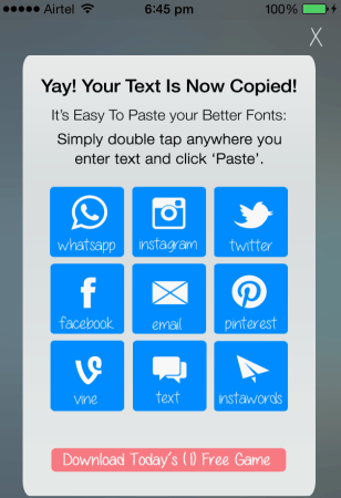 The new option you see at the top left corner, would reset everything and let you start fresh. This way you will be able to send people messages with cool looking fonts and make your friends wonder how you are able to do that. Go ahead and try out all the free fonts available with this app.