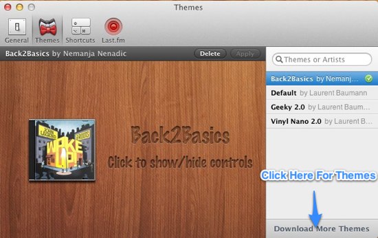 One thing that I love is that the application has themes that are amazing and makes the application even more desirable. The community actively keeps on developing themes most of which are free and really look amazing. By default Bowtei comes with three themes. If you want to download more than that can be done from within the application. Just click on the get themes button as shown below. Now you can browse and download skins directly from the application.