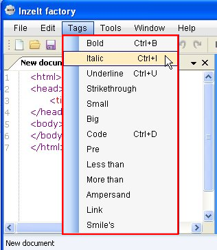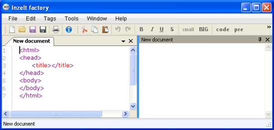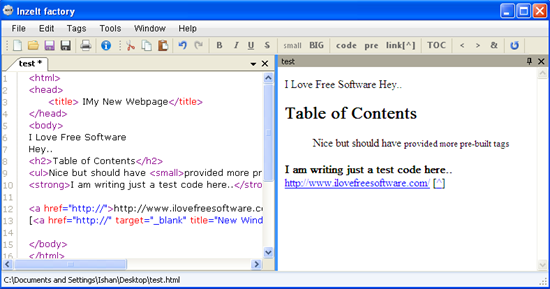 Inzelt Factory is a free HTML Editor for Windows, with WYSIWYG (What You See Is What You Get) support. It’s a handy and lightweight software that lets you easily create webpages by writing HTML code for them. Inzelt Factory is a multi-tabbed editor, which allows you to work with multiple programs together and provides a “Tags” menu to quickly insert useful tags in your code.