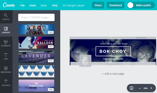 Canva is a free online Twitter cover photo maker which provides tons of templates to design a visually appealing Twitter cover pic. You can personalize templates, upload photos to add in templates, write fancy text, etc. and then download it as JPG or PNG format to set it as your new Twitter cover photo. Not just Twitter, you can use it to create social media posts for other platforms as well like Facebook, Instagram, etc. Best of all, it can help you design a beautiful Twitter header within few minutes. What I liked the most about Twitter header maker of Canva is that it intelligently displays how your Twitter cover photo will be displayed on your profile. This will help you design cover photo corresponding to your Twitter profile picture.