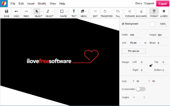 As soon as you select the design type i.e. Twitter Cover, you will see its editing interface as shown in the main screenshot. All the editing options are available in the toolbar at the top like bring an element to the top/back of another element, insert text, photo, shape, etc. What makes it stand apart from other similar websites on my list is that it supports working with layers like any standard image editor. The option to use layers is at the top-right part of the editing interface; click on it to see the Layers toolbox from which you can add, make visible/invisible other layers, etc. I hope this extra layer-support will help the pro users to design more stunning Twitter cover pics. Once your cover pic is designed, you can export it as JPG, PNG, SVG, and PDF.