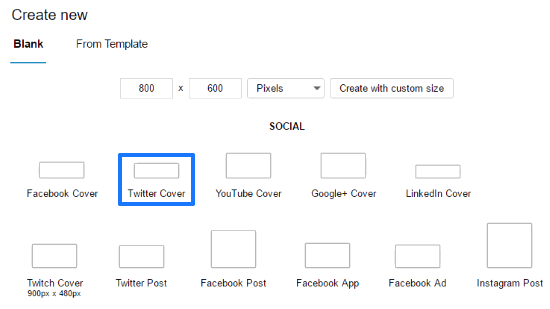 Gravit is another free online Twitter cover photo maker. With it, you can design social media posts like Facebook, YouTube, LinkedIn, Twitch, Google+ cover, etc. Unlike other Twitter cover makers on my list, it doesn’t provide any customized template. So, if you think you can create an amazing Twitter cover photo without any template, then you can check it out. You need to create a free account on it in order to use it. After creating an account, you can create a new design from the Dashboard. Make sure you select “Twitter Cover” when it prompts you to select the design type, as shown below.