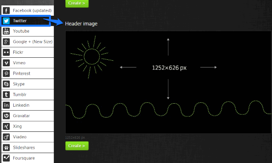 Visit the link provided above and then choose to design “Header image” from the Twitter section, as shown below. After that, it will prompt you to upload an image of “1253 x 626” resolution. Do note that it will not accept any image with lower resolution, than the specified one.