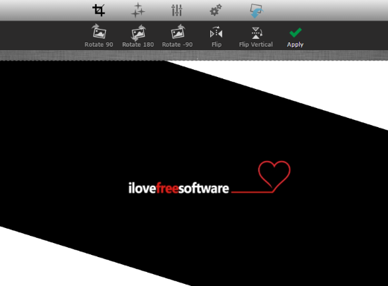 It then opens the uploaded photo in its editing interface. All editing options are at the top. However, it just supports some basic image editing options like flip, rotation, crop, resize, etc. Use these options if you want to or you can simply skip the step by clicking on “Apply” button. In the next step, you can apply effects to the photo from the “Effects” option at the top. The effects include some basic color effects and the option to adjust image brightness, sharpen, etc. In the end, you can download the Twitter cover as JPG format; click on the “Export” button at the top.