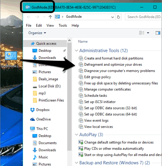 In the screenshot below, you can see God Mode window that contains Administrative and other tools.