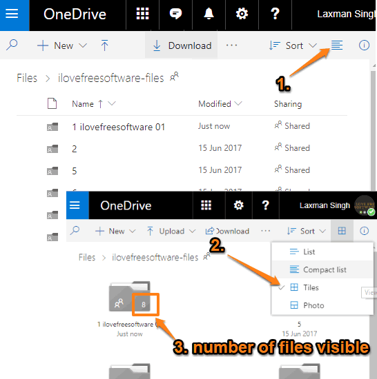 This option is handy when you don’t want to change the view mode to Photo or Tiles, again and again, just only to check how many files are stored in a particular OneDrive folder. To use this option:
