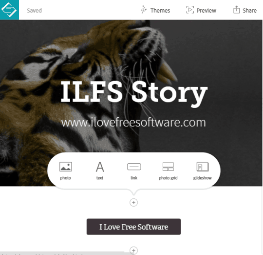 Adobe Slate lets you create elegant presentations, visual stories, web pages, or any other project you are interested in. Whether you want to convey some message about your newly launched product or anything, Adobe Slate can be a good option to try. You can use text, photos, and links to complete your project and share it with people. If you want, your project can also be set to private, before publishing the project. There are total 11 themes and couple of handy formatting options to make your project look beautiful.