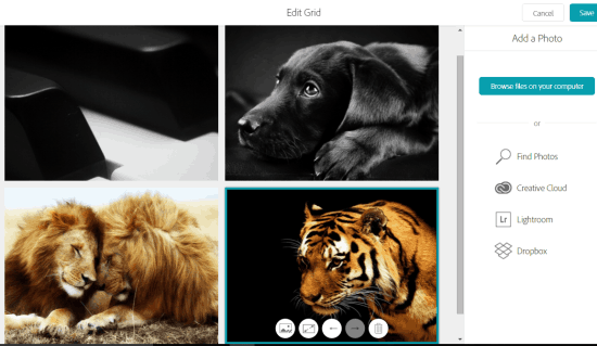 - Photo Grid: This is one of the important options using which you can bulk insert photos in a 2*2 size grid. You can also move an image or replace it and delete it. Before adding the photo grid, you can also preview it, and then save the changes