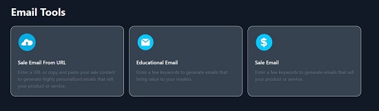 2. Click on ‘Generate an Email’ and in the next page choose if you wish to generate a Sale email from a URL (or Sale content), Sale email using keywords about the product or service or an Educational email using related keywords.