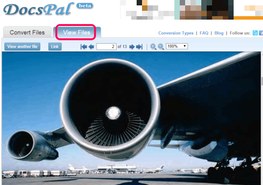 DocsPal (beta) is a very useful online document converter which supports file viewing feature. You can access View Files tab and upload your DjVu file to view it. You can also insert URL of an online DjVu file to view its content. While viewing your file, you can move to next, previous, first, and last page of your DjVu file using the available buttons. Moreover, option to zoom in and zoom out the page is also available which will help you to view the content of your DjVu file clearly.